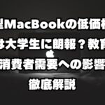 大学生必見!599ドル〜の新型MacBookが教育市場とPC選びに与える影響とは 「MacBookが欲しいけど、高すぎて手が出ない…」そんな風に思っている大学生は多いのではないでしょうか? Appleが噂されている新型MacBook(A18 Proチップ搭載モデル)の低価格化戦略は、これまで価格の壁に阻まれていた学生や教育市場に大きな変化をもたらす可能性があります。この記事では、599ドル(教育割…