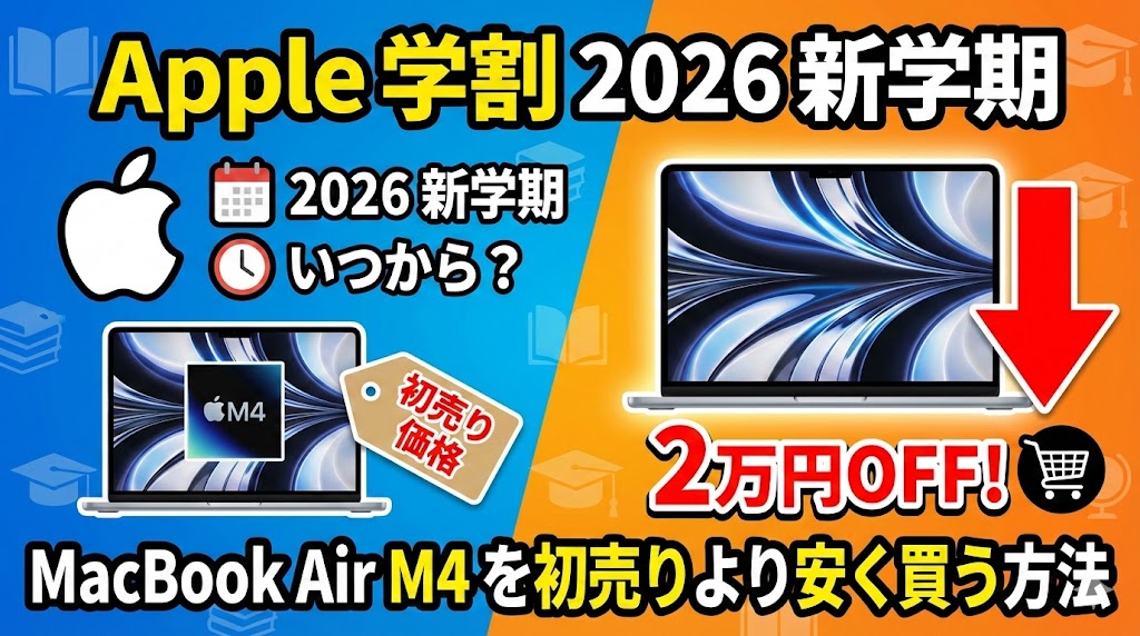 【1月更新】Apple学割2026新学期はいつから?MacBook Air M4を初売りより安く買う方法