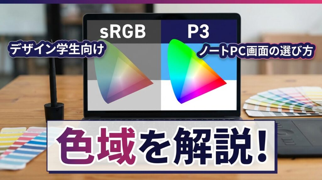 本記事では、デザイン学生のノートPC画面選びに必要な色域・パネル方式・表面処理・解像度の見方を、用途に置き換えながらわかりやすく解説します。(専門知識は不要です!)