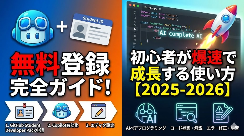 GitHub Copilot学生版無料登録完全ガイド!プログラミング初心者が爆速で成長する使い方【2025-2026】