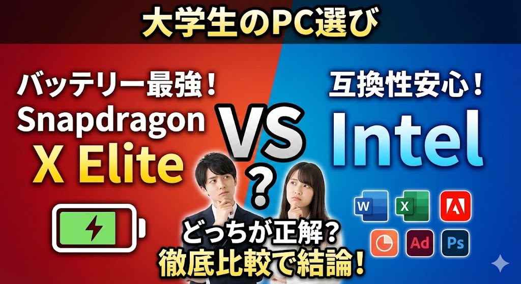 大学生のPC選び|Snapdragon X EliteとIntel、どっちが正解?互換性とバッテリーで比較