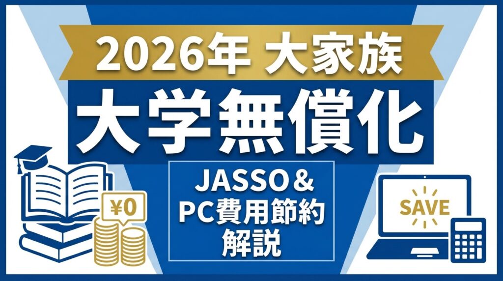 本記事では、多子世帯の大学無償化2026・JASSO奨学金・PC購入費の考え方を、制度の基本から実際の予算配分までわかりやすく整理します。(専門知識は不要です!)