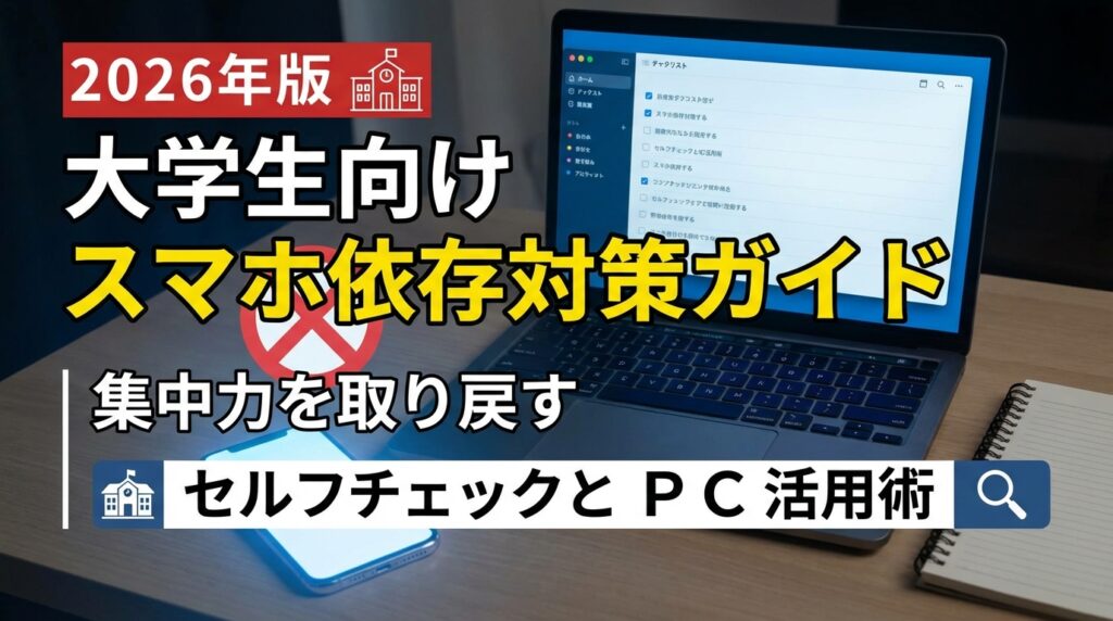 大学生のスマホ依存対策ガイド2026|セルフチェックとPC活用で集中を取り戻す方法