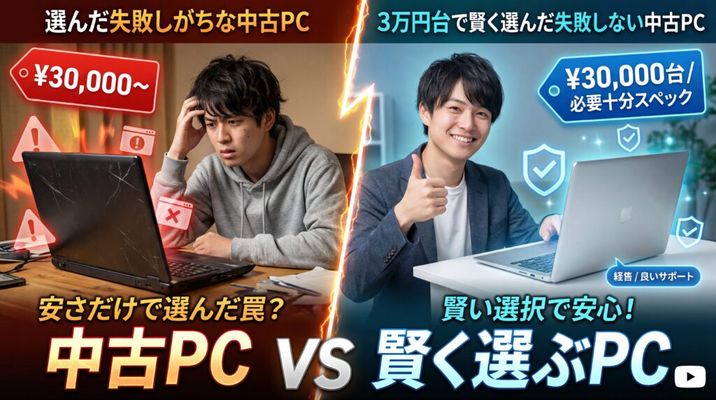 中古パソコンの購入における失敗を減らすには、「どの機種を買うか」よりも「どこで買うか」が最も重要です。